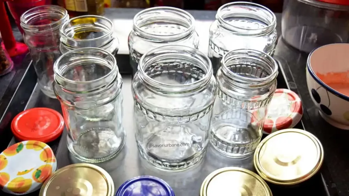 - Spălarea borcanelor – Înainte de sterilizare, asigură-te că borcanele și capacele sunt bine spălate cu apă fierbinte și detergent, apoi clătite bine.