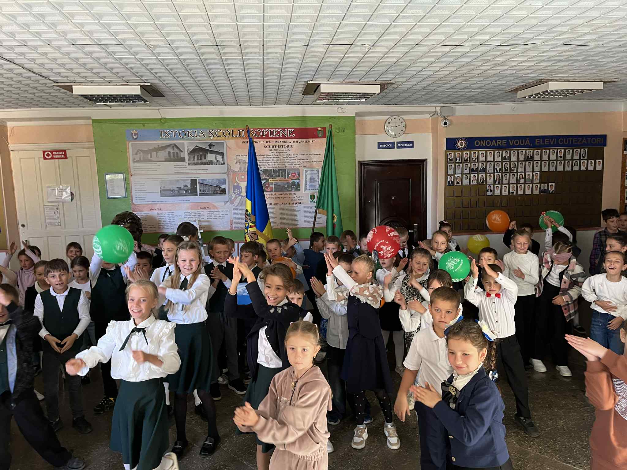 Pe 26 septembrie curent, în incinta Instituției Publice Gimnaziul „Viorel Cantemir”, a fost sărbătorită Ziua Elevului – o zi plină de emoții, surprize și voie bună. O sărbătoare pe cinste a fost organizată de către cadrele didactice și elevii claselor absolvente din școala sofiană. O dovadă în plus că în gimnaziul nostru este o relație profesor- elev frumoasă, iar în cap de masă, pe lângă carte, stă prietenia, creativitatea și buna dispoziție a marii familii școlare.