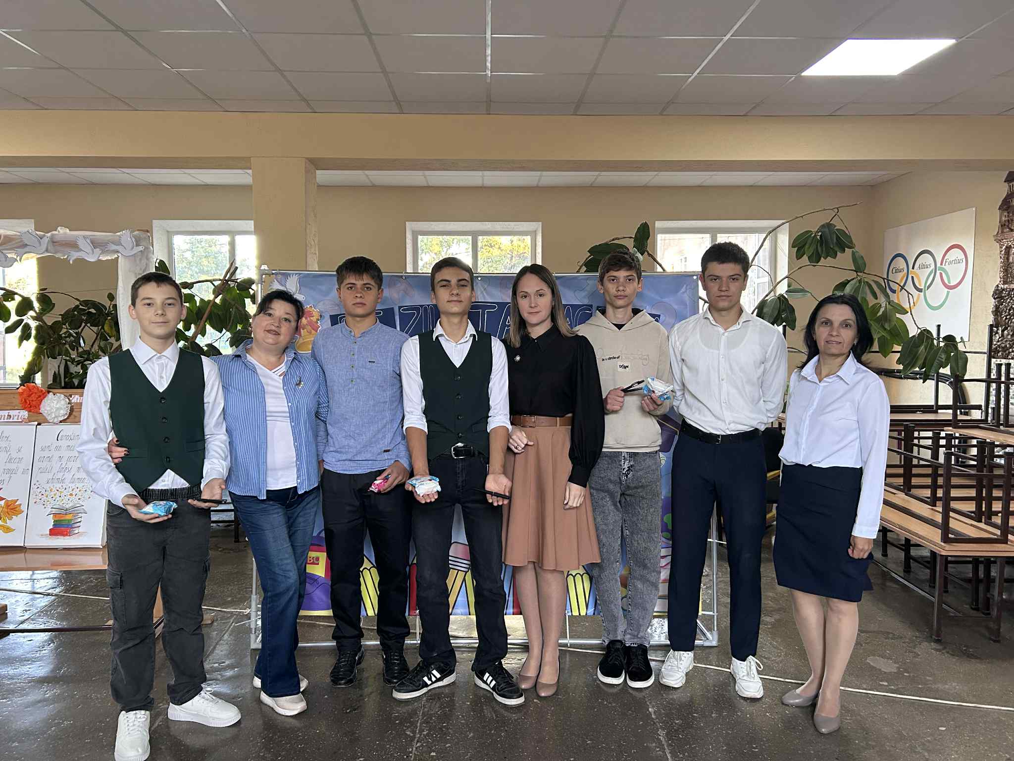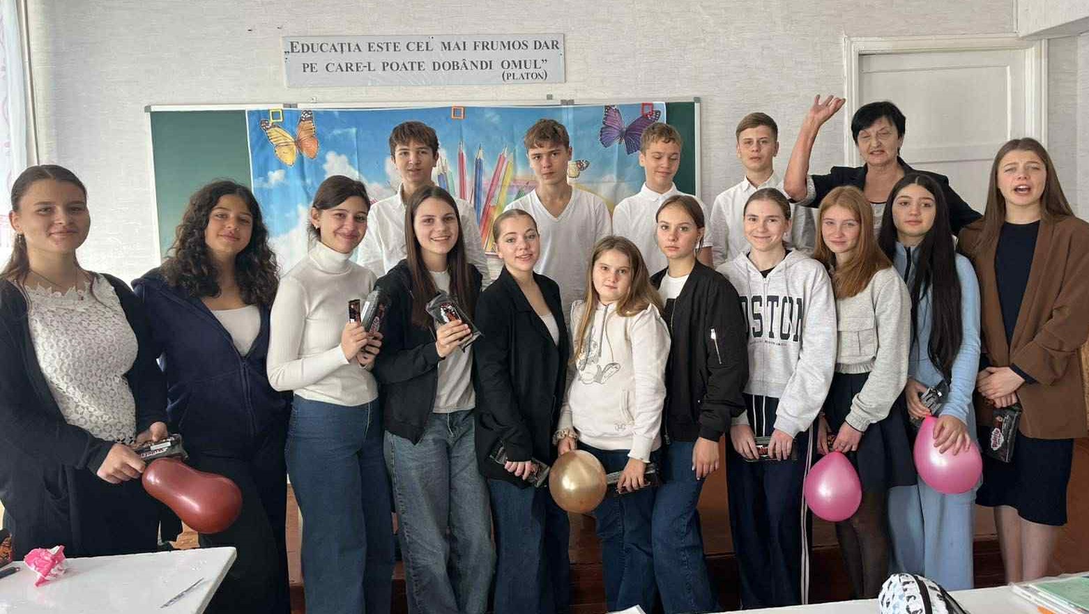Ce poate fi mai frumos și plăcut pentru elevi, decât să fie întâmpinați dimineața, la intrarea în școală, de însăși administrația gimnaziului și, nu doar cu un zâmbet și un salut de bun venit, dar și cu o mică surpriză. Așa a fost creată atmosfera de sărbătoare pentru elevi de către doamna directoare Irina Tighineanu, însoțită de doamna Tatiana Leșanu, director adjunct pentru instruire. Cadourile și surprizele dulci, însoțite de urările și felicitările elevilor claselor a IX-a ,,A” și,,B” au dat culoare evenimentului, emoțiile pozitive fiind cea mai mare apreciere pentru organizatorii sărbătorii. Sărbătoarea nu ar fi fost posibilă fără sprijinul generos al sponsorilor: