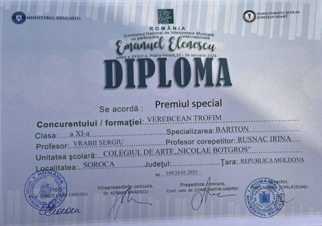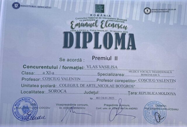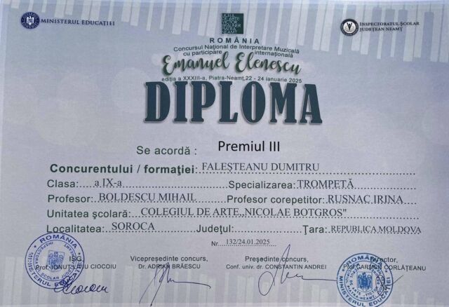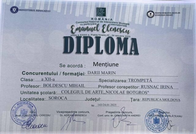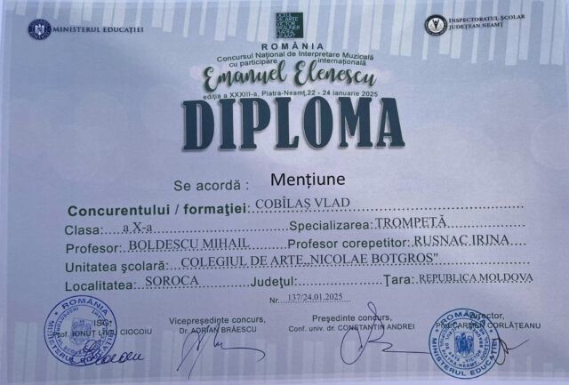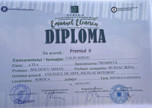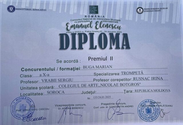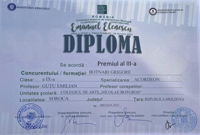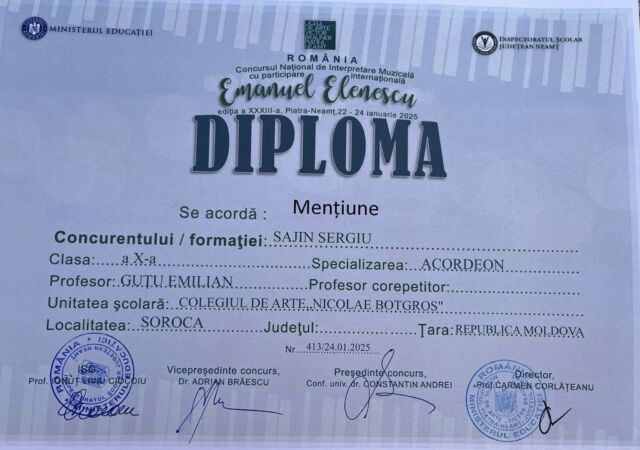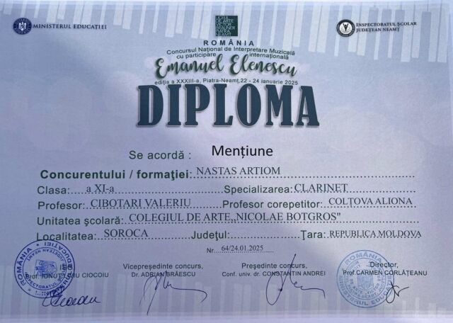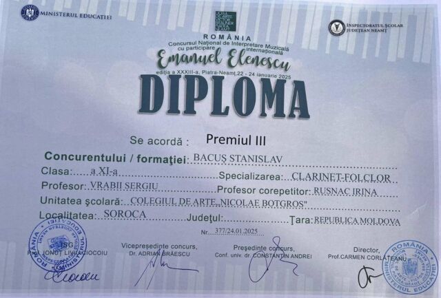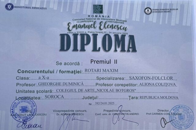 Astfel, printre cei peste 470 de participanți s-au numărat și 19 elevi ai Colegiului de arte „Nicolae Botgros” din soroca, care au obținut rezultate remarcabile, respectiv locurile I,II, III și mențiuni, confirmând faptul că la Soroca se face muzucă de calitate și că Soroca nu duce lipsă de talente!