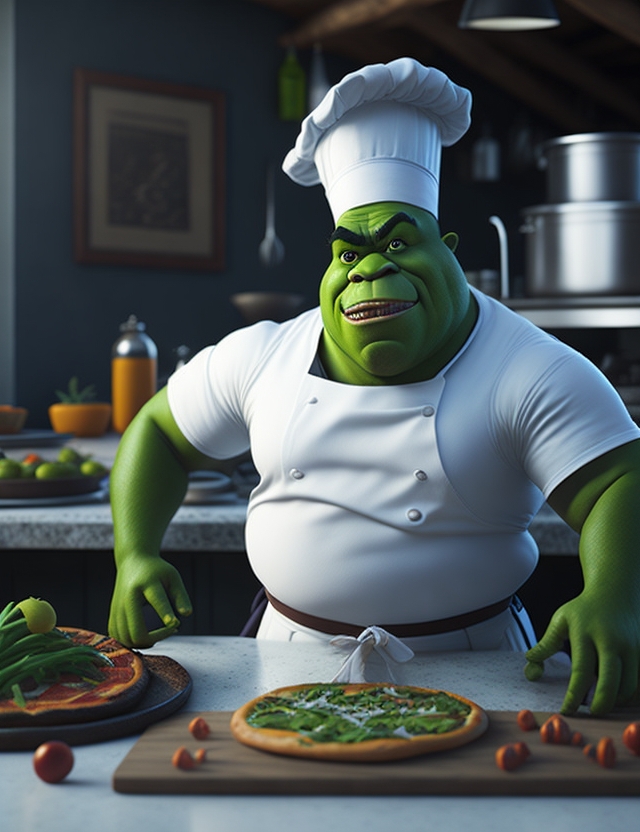 Leonardo_Diffusion_Shrek_as_chef_wearing_white_chefs_hat_and_w_1