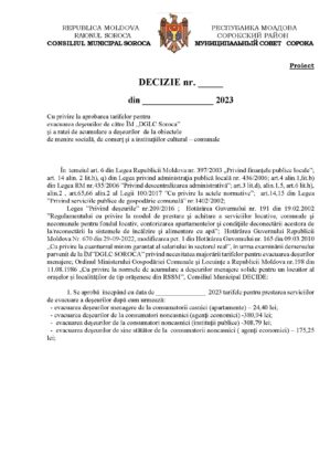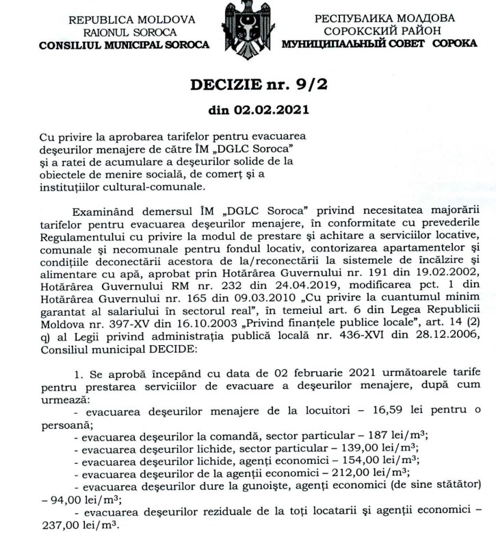 În municipiul Soroca ar putea să fie majorată taxa pentru evacuarea deșeurilor. Un proiect de decizie ce prevede acest lucru a fost propus de Primăria Municipiului Soroca la consultări publice.