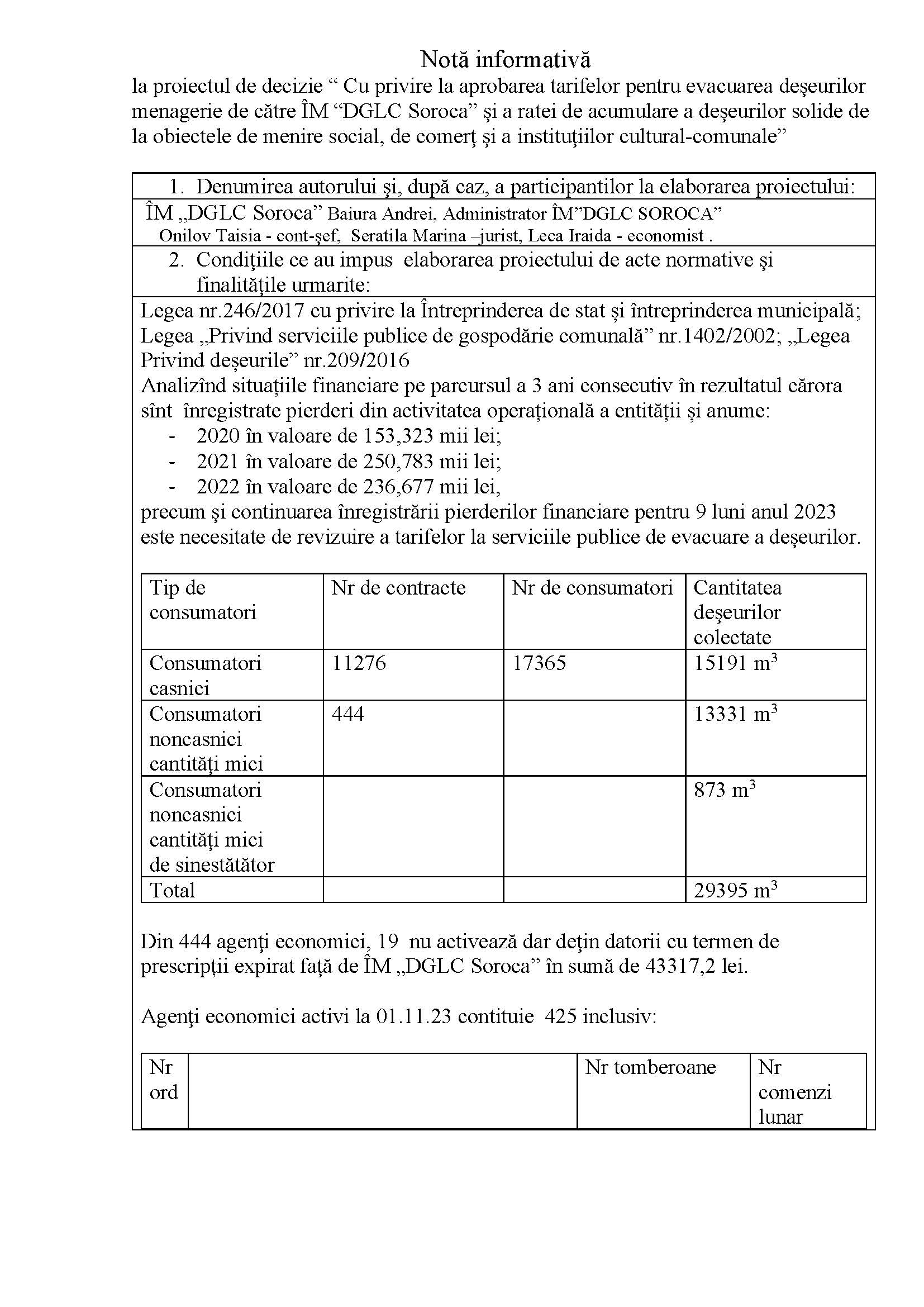 De exemplu consumatorii casnici ar putea plăti 24,40 lei, în timp ce până acum plata era 16,59 lei de persoană. Pentru evacuarea deșeurilor de la agenții economici se propune tariful de 380,94 lei, de la instituțiile publice – 308,79 lei, iar pentru evacuarea deșeurilor de sine stătător de la consumatorii noncasnici (agenți economici) – tariful de 175,25 lei.