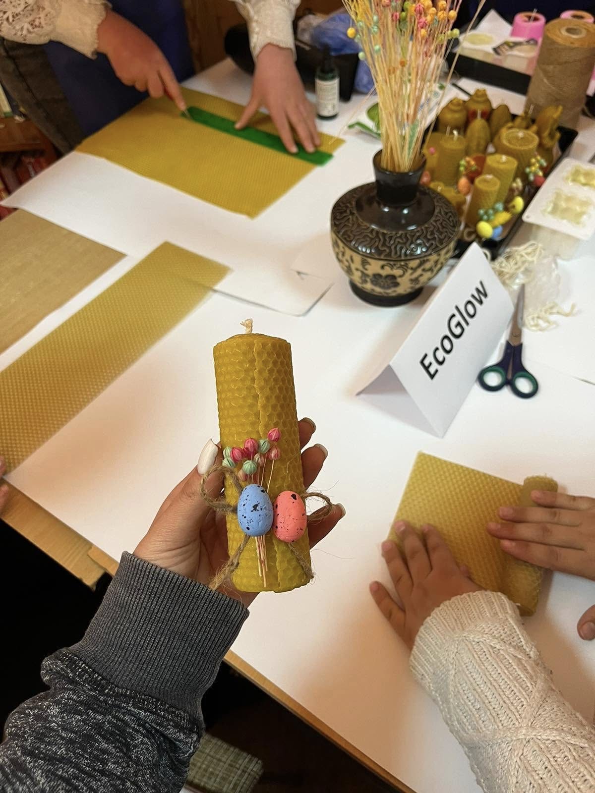 EcoGlow Candles – lumânări din ceară naturală create prin două tehnici, învățate de clasa a VII-a împreună cu profesoara Grăchilă Cristina.