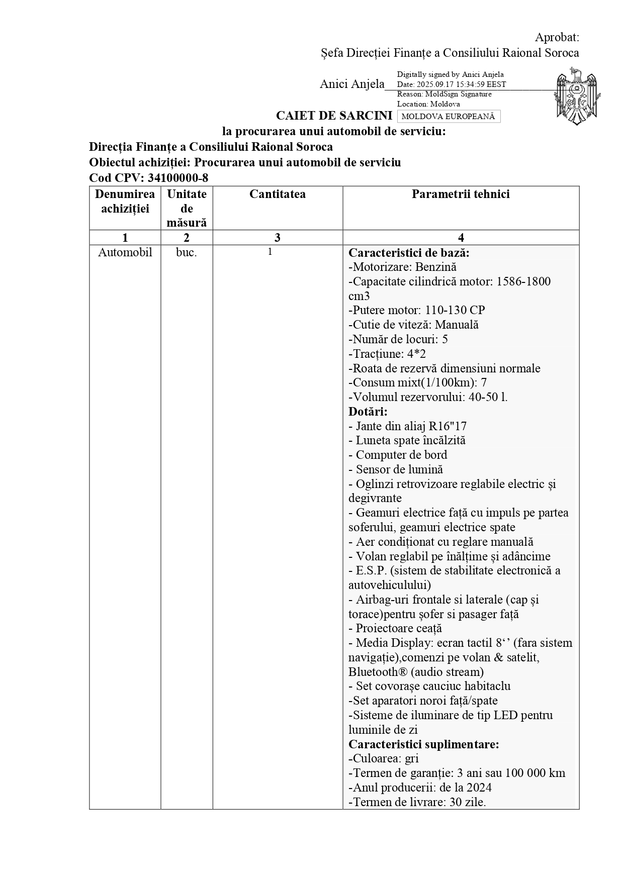 Dacă procurarea unui automobil nou pentru Direcția Finanțe poate fi cumva argumentată de Consiliul Raional Soroca, nu am găsit răspuns și argumente de ce s-a organizat o licitație cu dedicație. Caietul de sarcini al Direcției Finanțe se pliază perfect pe descrierile comerciale ale automobilului Dacia Duster Extreme, importat în Republica Moldova de dealerul oficial, care a și câștigat licitația.