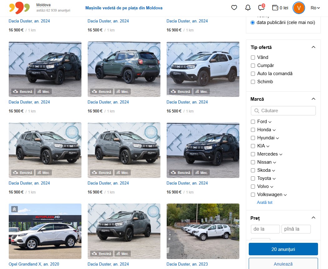 La fel este și când cauți pe site-urile specializate criteriile din caietul de sarcini, apare un singur model – Dacia Duster. Și nu este problema în acest model, Direcția Finanțe a Consiliului Raional Soroca poate opta pentru orice mașină, dar atunci s-o spună pe șleau – vrem la comandă anume așa automobil de la acest importator. Fără să mai mimeze o licitație.