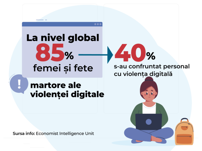 Potrivit studiului realizat de Economist Intelligence Unit, la nivel global, 85% dintre femei și fete au declarat că au fost martore ale violenței digitale, iar aproape 40% dintre ele au experimentat-o personal.
