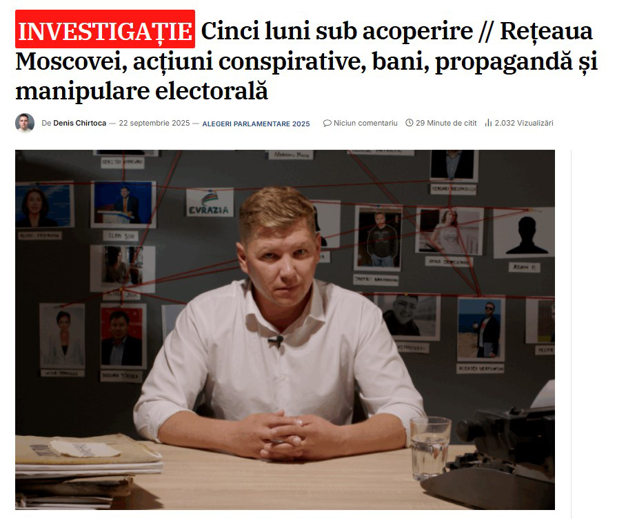 Timp de cinci luni, jurnaliștii s-au infiltrat într-o rețea de influență coordonată de ONG-ul „Evrazia”, controlat de Ilan Șor, și au documentat mecanisme de instruire a tinerilor, recrutare pentru acțiuni de teren, „sondaje formatoare” ilegale, propagandă online și finanțări ascunse. Activitățile vizau susținerea unor partide și blocuri electorale prorus, în special Partidul „Moldova Mare”, „Alternativa” și „Patriotic”.
