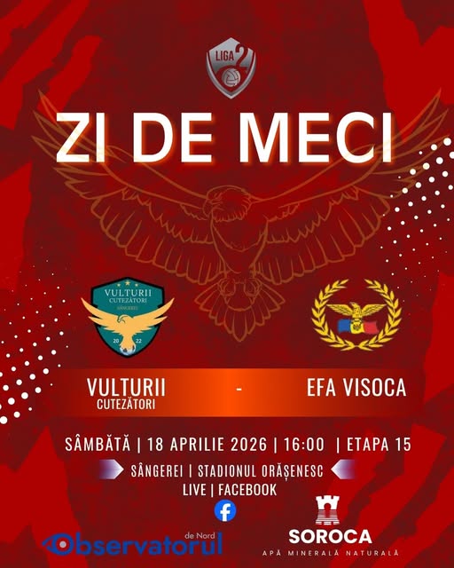 Astfel, sâmbătă, 18 aprilie, la Sângerei se va disputa meciul cel mai important din seria Nord a Ligii a 2-a – gazdele vor primi replica celor de la Visoca. Meciul va începe la ora 16:00, pe stadionul orășenesc.