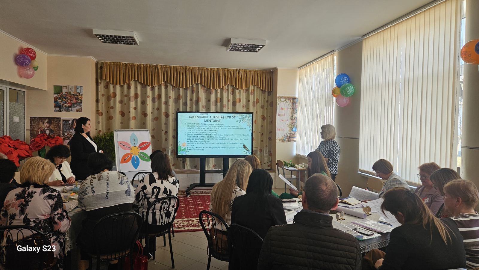 Participanții au fost informați despre metodele de identificare a nevoilor de formare ale profesorilor, despre elaborarea unui calendar al activităților de mentorat și despre strategiile eficiente de implementare a acestora. Prin intermediul unor exerciții practice, managerii școlari au avut ocazia să analizeze probleme concrete, să identifice nevoi specifice și să propună soluții aplicabile în activitatea lor curentă.