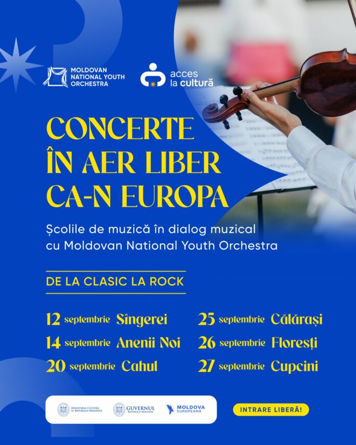Moldovan National Youth Orchestra revine în fața publicului cu o serie de concerte în aer liber, organizate sub genericul „Concerte în aer liber ca-n Europa”. Evenimentele vor avea loc în șase localități din Republica Moldova și vor aduce pe scenă un program muzical variat, de la clasic la rock.
