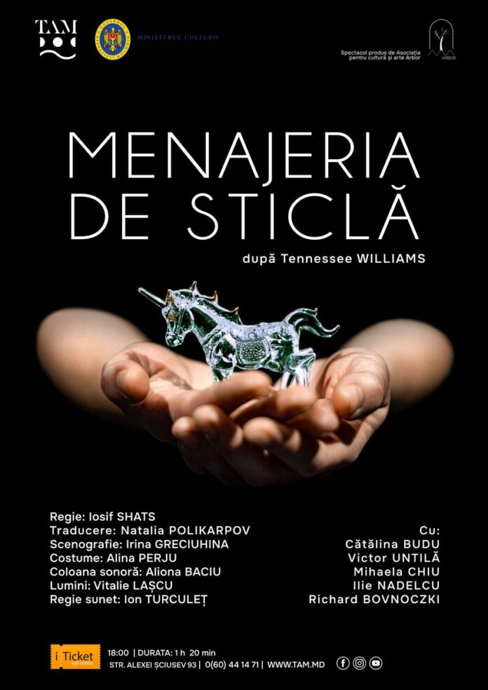 Mâine, 22 iunie, ora 17.00, Teatrul „V. Apostol” te invită la spectacolul „MENAJERIA DE STICLĂ”, după Tennessee Williams. Povestea se concentrează pe viața unei familii compusă din mama Amanda, fiul Tom și fiica Laura. Amanda, o femeie nostalgică și visătoare, își petrece mare parte a timpului căutând soluții pentru a găsi un soț potrivit pentru Laura, care este extrem de timidă și introvertită. Viața lor monotonă este întreruptă atunci când Tom îi aduce acasă un coleg de muncă, Jim, pentru a-l prezenta …