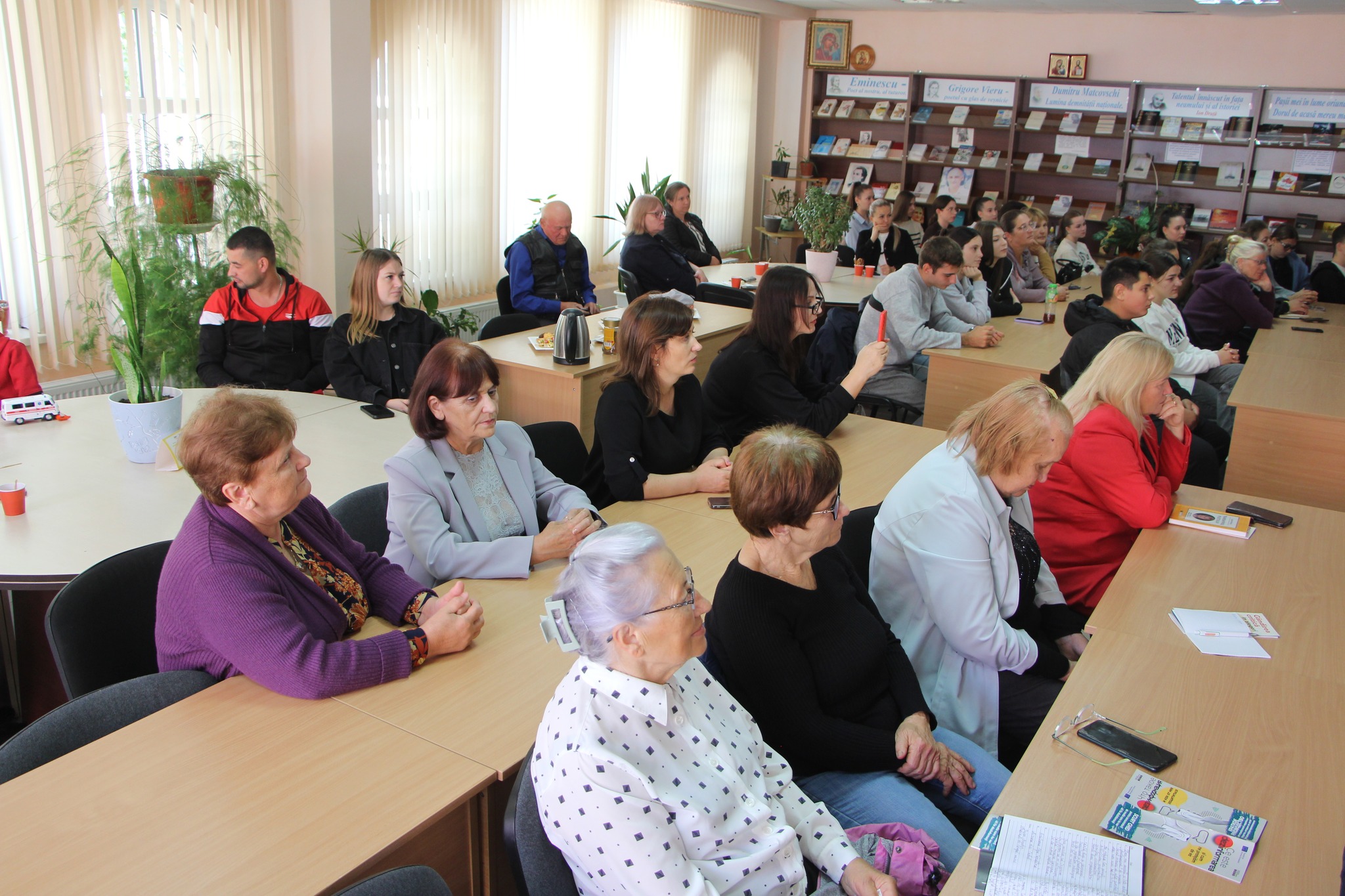 Atmosfera caldă și deschisă a fost completată de membrii Grupului de Inițiativă „Ambasadorii maturității”, bibliotecari din rețeaua raionului Drochia, numeroși iubitori de literatură, care au venit să-i asculte pe invitați și să participe la dialog.