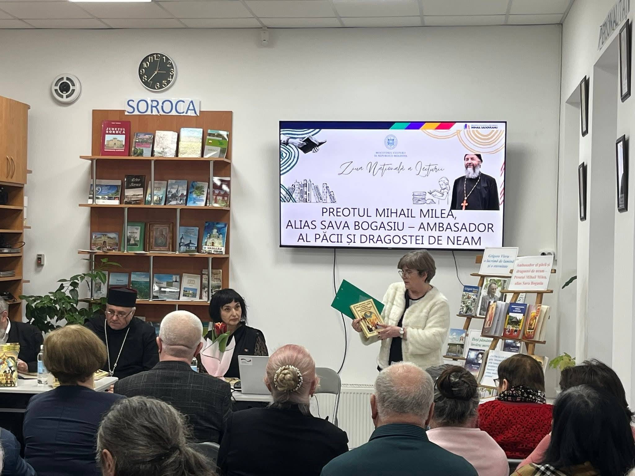 În cadrul Zilei Naționale a lecturii -2026, la Biblioteca municipală „Mihail Sadoveanu” și la Biblioteca „Basarabia” din Soroca aU avut loc două evenimente inedite – lansarea a trei noi volume scrise de prolificul scriitor buzoian Sava Bogasiu, cunoscut sorocenilor ca Părintele Mihail Milea, Cetățean de onoare al raionului Soroca, Ambasadorul Păcii și Dragostei de Neam.