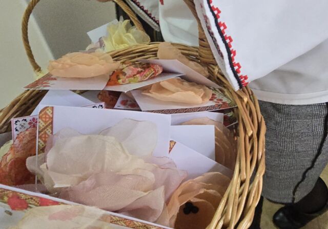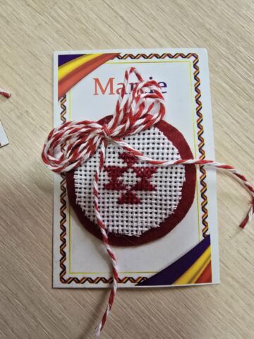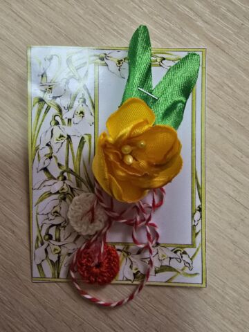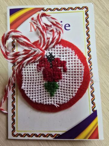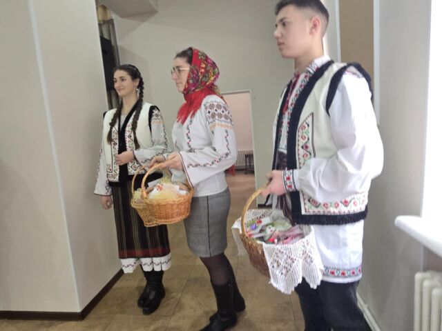 Doi tineri în port popular, au oferit cu drag tuturor celor prezenți câte un mărțișor hand made, confecționat din materiale reciclabile, cât și broșe cu flori de primăvară, fiind însoțite de frumoase mesaje de felicitare. Fiecare profesor a rămas plăcut surprins de acest gest frumos în preajma zilei de 1 Martie, prima zi de primăvară, când prindem la piept mărțișoare – simbolul primăverii, după frumoasa tradiție, când natura renaște și începe o nouă viață.