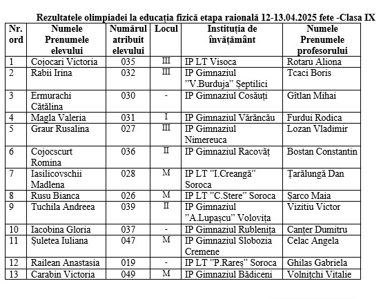 Recent, s-a desfășurat Olimpiada raională la disciplina Educația Fizică, la organizarea cu succes a căreia si-au adus aportul Andrei Jitniuc, președintele Asociației Teritoriale Olimpice Soroca; Vasile Baș, directorul LT „Constantin Stere”; Vsevolod Gâtlan, directorul Școlii Sportive Raionale Soroca.