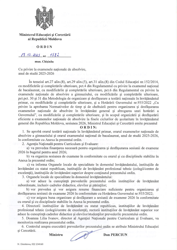 Ministerul Educației și Cerecetării a stabilit Orarul examenelor naționale pentru anul de studii 2025-2026