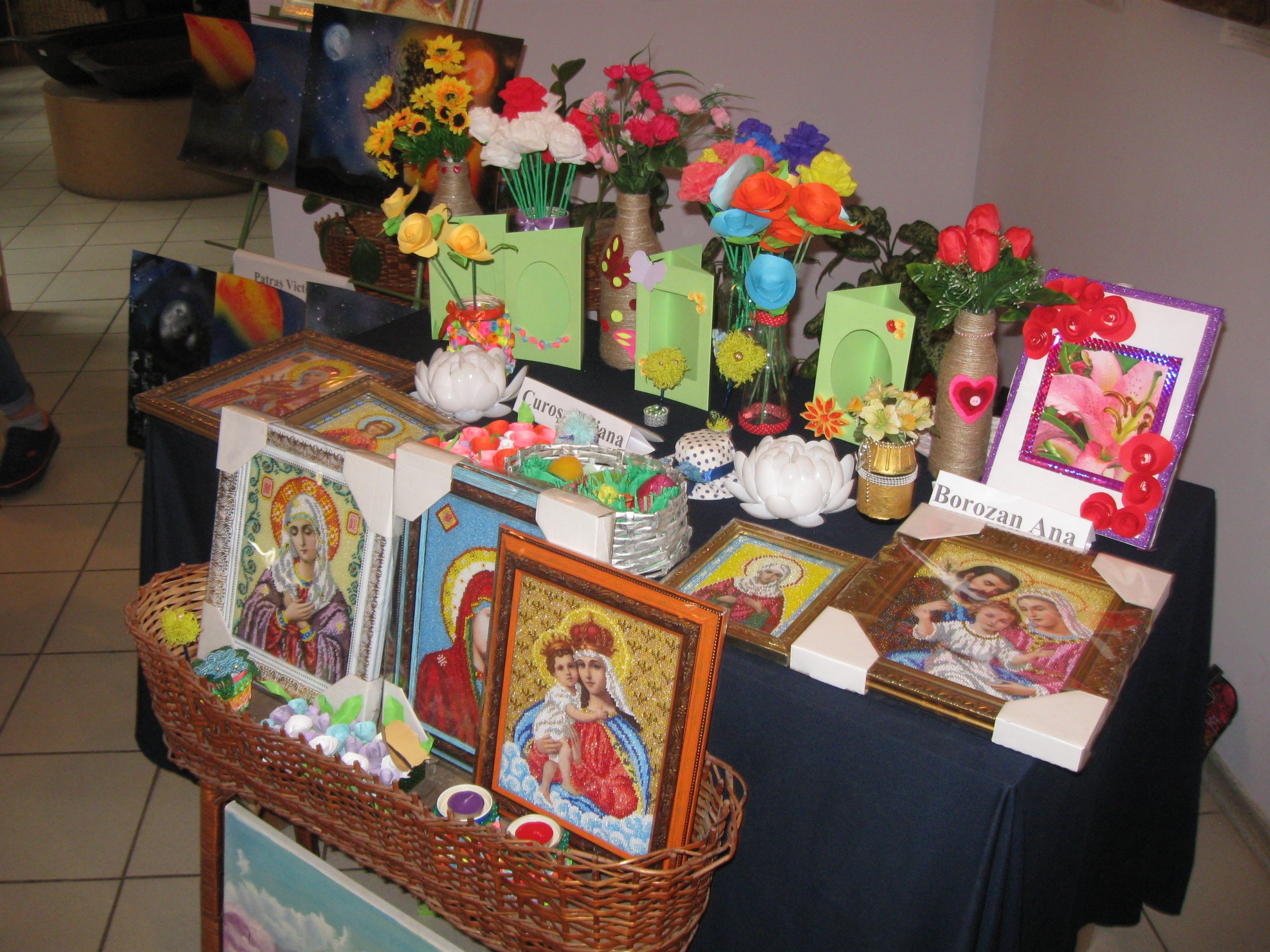 Ouă încondeiate și coșuri din pănuși de porumb, expuse în incinta Muzeului