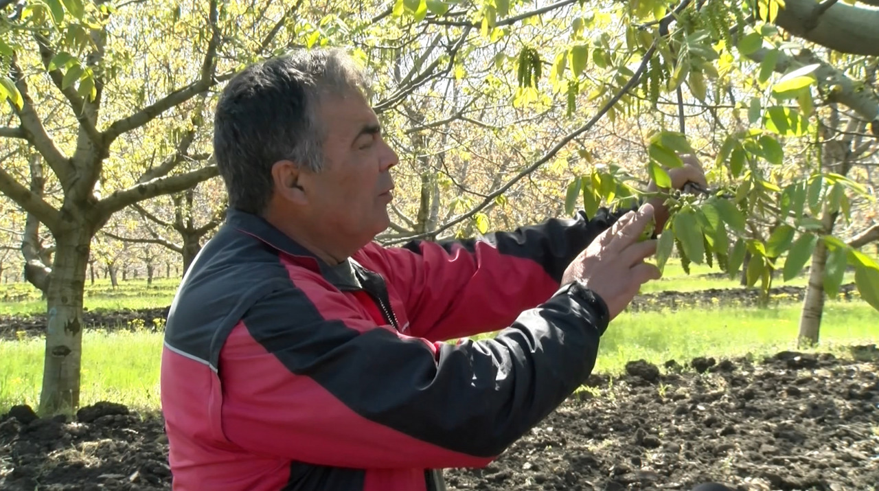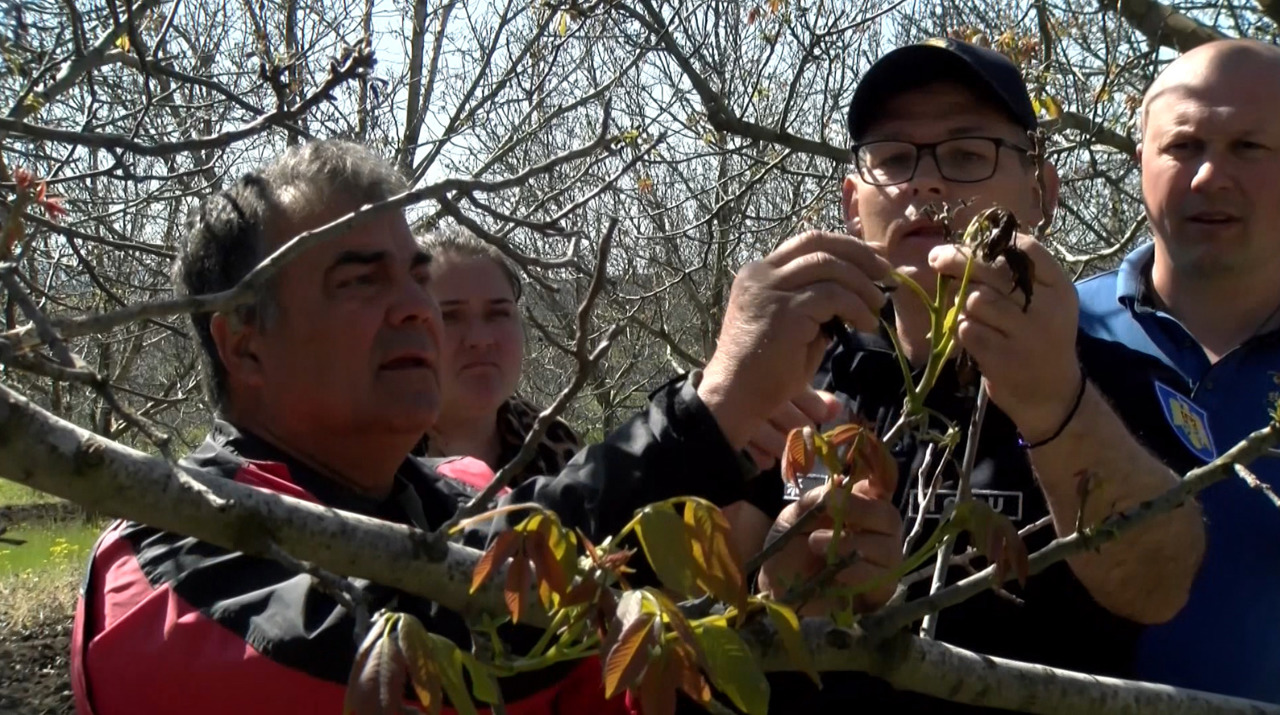 „Așa arată pomul neafectat de înghețuri. Nuca este în floare, muguri masculini sunt, dar din păcate avem ce avem”, spune Valeriu Guțu, șef, sector nucifer.