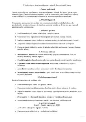 Potrivit documentului propus spre consultare publică, proiectul vizează transformarea actualei piețe agroalimentare într-un spațiu modern, bine organizat și funcțional, care să susțină dezvoltarea comerțului local, să crească siguranța alimentară și să promoveze produsele autohtone.