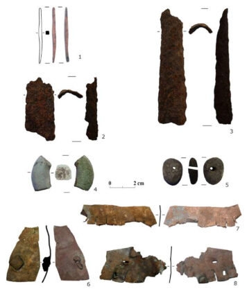 Arheologii au identificat pe teren fragmente ceramice, obiecte din bronz și fier, resturi de lut ars, oase de animale, dar și fragmente osoase umane provenind de la două schelete.
