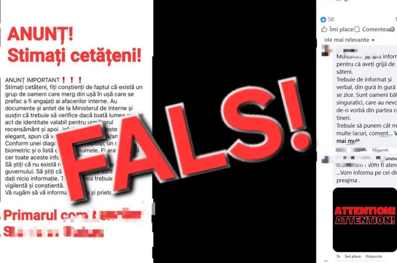 În contextul mesajelor care circulă pe rețelele de socializare și în grupurile cetățenilor, potrivit cărora unele persoane ar veni la domicilii, ar pretinde că sunt angajați ai ministerului Afacerilor Interne și ar solicita date personale, iar ulterior comit ilegalități.