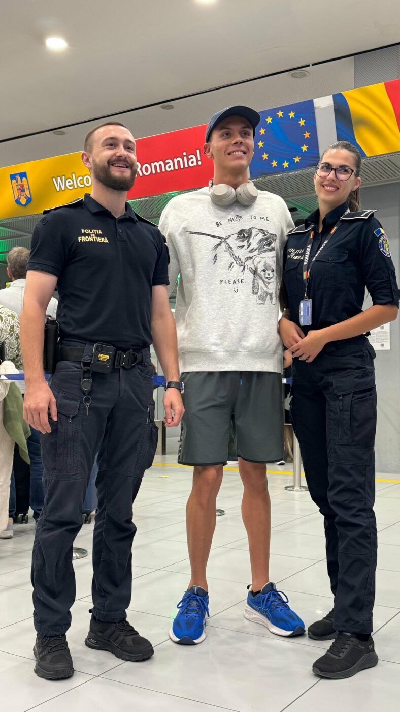 Interesant este că nu doar cei mici s-au înghesuit la poze cu David Popovici, ci și poliția română! Mai mulți polițiști prezenți la serviciu pe aeroportul din Otopeni l-au oprit pe marele înotător și l-au rugat să facă o fotografie cu ei.