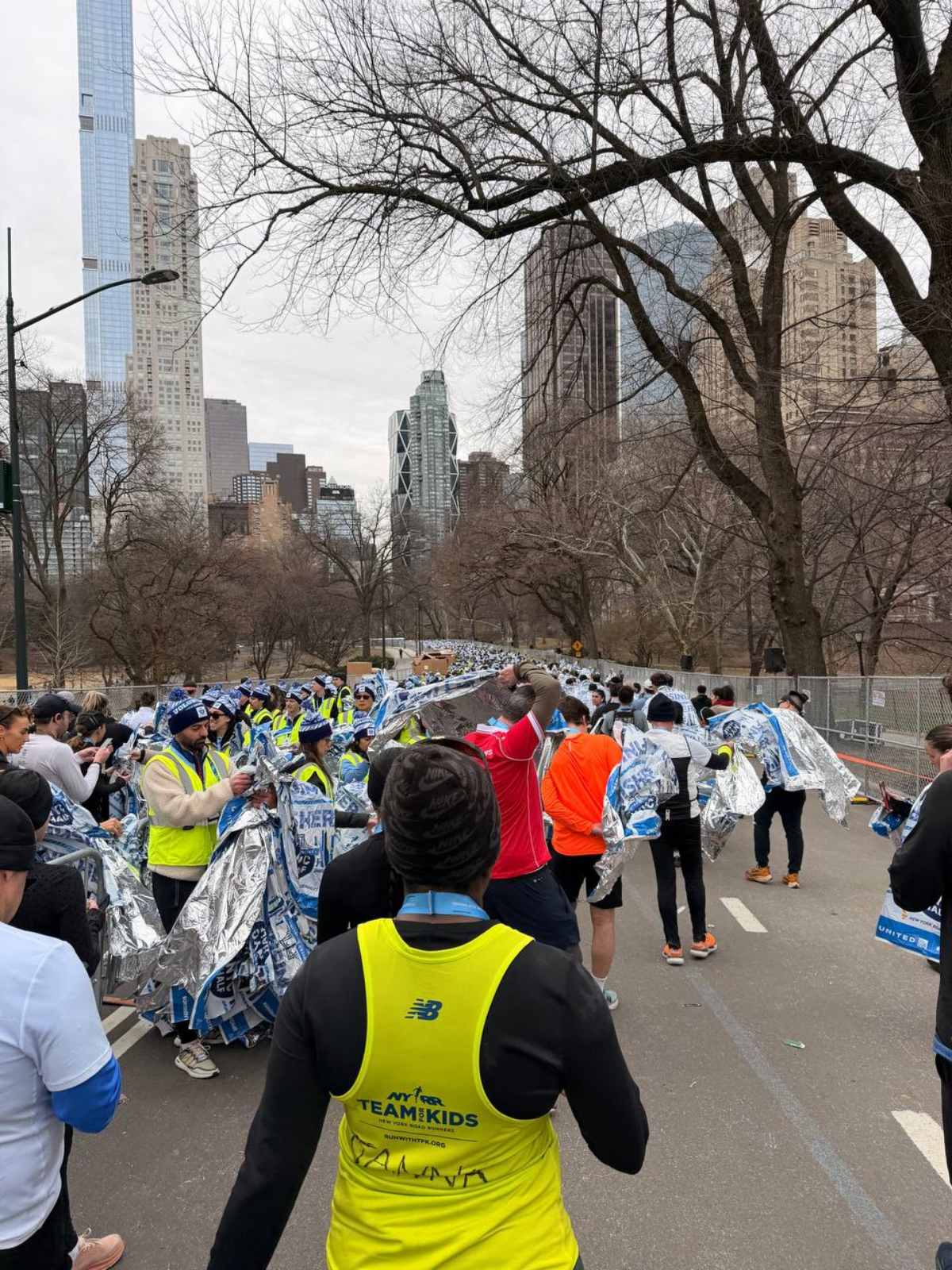 Altfel, primii 10 km s-au simțit foarte bine. Am admirat priveliștile și mă simțeam energică. Cel mai greu mi-a fost între km 11 și 14. Era un sector fără spectatori – doar alergătorii, drumul și priveliștea. Știam că la km 15 mă aștepta soțul meu, iar acest lucru m-a ajutat să continui în același ritm. Cu siguranță susținerea contează enorm – îți oferă un fel de boost de energie greu de explicat… Este impresionant să vezi că această zi nu este importantă doar pentru alergători, ci și pentru oamenii care locuiesc în New York. Mulți ies în stradă pentru a-i susține pe participanți, indiferent dacă cunosc sau nu pe cineva din cursă. Strigă, aplaudă și încurajează pe toți cei care aleargă. Mulți aduc bannere cu mesaje de susținere sau glume care te fac să zâmbești și îți dau un plus de energie exact când ai cea mai mare nevoie. Pe la km 16 am simțit acel val de energie despre care mulți alergători vorbesc – „runner’s high” – nu exista un termen exact in limba română. Alergam spre Bryant Park, îndreptându-mă spre Times Square, și am avut acel val de energie care îmi tăia respirația și îmi aducea lacrimi în ochi. Este un val neașteptat de energie și emoție care apare după mult efort. Deși eram deja obosită, pentru câteva minute alergarea s-a simțit mai ușoară și aproape euforică. Încercam să controlez emoția prin respirații scurte. A fost un moment unic și foarte special.