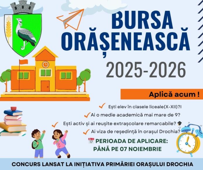 Elevii din instituțiile de învățământ din orașul Drochia au din nou ocazia să-și vadă eforturile recunoscute public. Primăria orașului Drochia anunță lansarea concursului pentru acordarea bursei orășenești pentru anul de studii 2025–2026, o inițiativă dedicată tinerilor performanți și implicați.