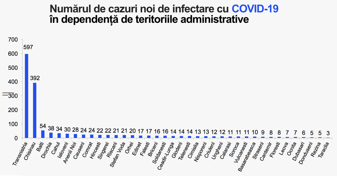 Din numărul total de cazuri, 29 sunt în rândul lucrătorilor medicali: 11 – medici, 9 – asistenți medicali, 9 – personal auxiliar.