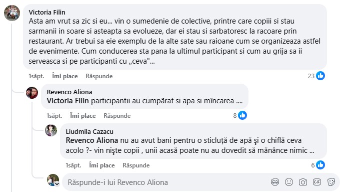 Meșterița Nina Manea de la Căinarii Vechi ne-a spus că din contra, este mulțumită de cum a fost organizat evenimentul și de atitudinea autorităților raionale față de ei. „Pe noi ne-au hrănit, ne-au dat apă și o caserolă. Anii trecuți ne dădeau plăcinte. Ansamblul nostru a primit 500 lei pentru participare. Am făcut vânzări și sunt mulțumită.”