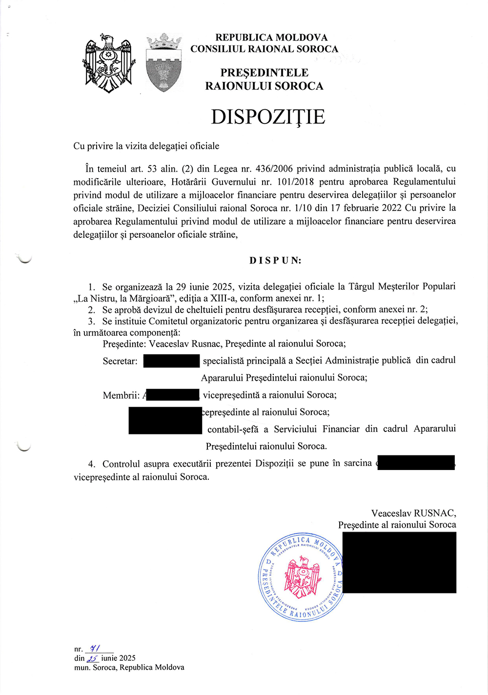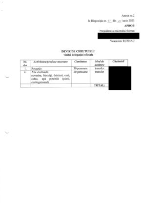 În timpul documentării acestui articol, până a fi publicată dezmințirea autorităților, am dorit și noi să aflăm dacă nu-i prea mult 20 mii lei pentru o recepție cu oficialități și chef la restaurant, cu tot cu hore la răcoarea climatizoarelor, dar nu ca „prostimea” sub razele soarelui. Ca să verificăm suma am căutat în Registrul Actelor Locale dispoziția președintelui raionului Soroca cu devizul de cheltuieli. Dar surpriză, autoritățile raionale au ascuns suma planificată pentru balul șefilor. De ce oare au încălcat legea ca să ascundă cum au cheltuit niște bani publici? Este o întrebare la care încă așteptăm răspuns de la șefii ce se tem de întrebări incomode.