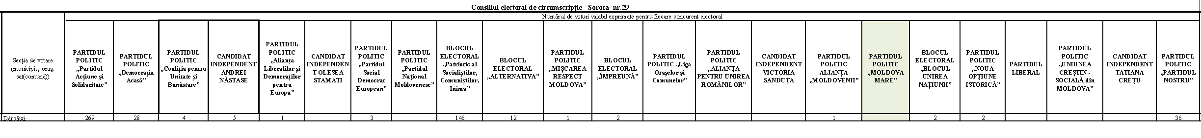 Sursa informațiilor: Consiliul electoral de Circumscripţie Soroca nr. 29