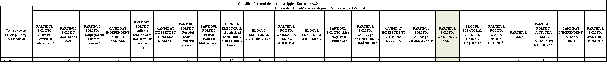 Sursa informațiilor: Consiliul electoral de Circumscripţie Soroca nr. 29