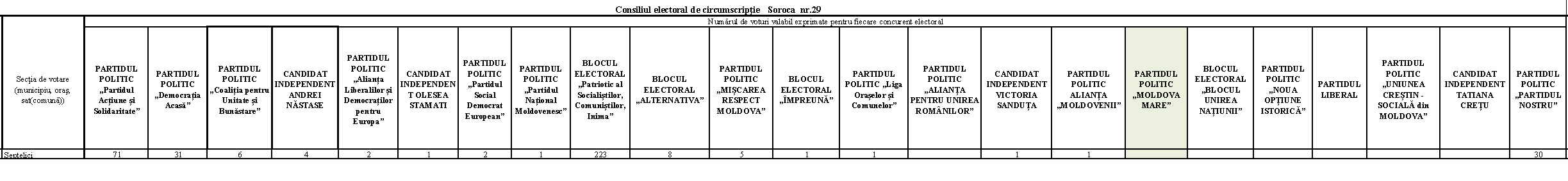 Sursa informațiilor: Consiliul electoral de Circumscripţie Soroca nr. 29