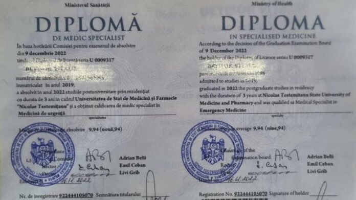 Amintim că 12 medici români, absolvenți ai unor facultăți de profil din România și Republica Moldova sunt suspectați de procurorii de la Bucurelști că ar fi obținut în mod fraudulos dreptul de liberă practică pentru specialități pe care nu le-ar fi studiat în realitate. Parchetul General de la București a deschis o anchetă, pe care o califică drept fără precedent. În anchetă este vizată Universitatea de Stat de Medicină și Farmacie „Nicolae Testemițanu” din Chișinău, care a eliberat actele.