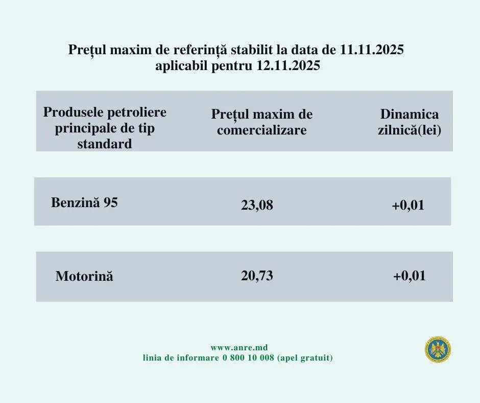 Benzina și motorina se scumpesc astăzi, 12 noiembrie 2025, după ce Agenția Națională pentru Reglementare în Energetică (ANRE) a stabilit prețurile maxime de referință pentru produsele petroliere standard.