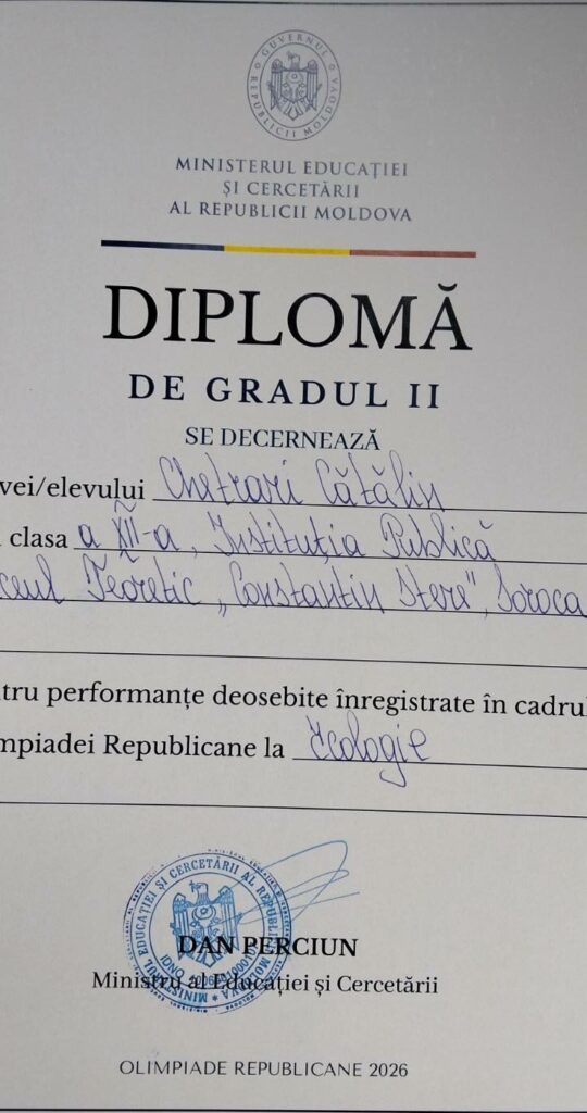 Evenimentul a reunit aproximativ 80 de elevi din Republica Moldova, care și-au prezentat proiectele inovative în domeniul protecției mediului, iar 17 cei mai buni au fost premiați. Printre laureați se regăsește și Cătălin Chetrari, elev în clasa a XII la Licel Teoretic „Constantin Stere” din Soroca, discipol al profesoarei Ariadna Maznbiuc, care a fost distins cu premiul II pentru proiectul „Pomul Inteligent”.
