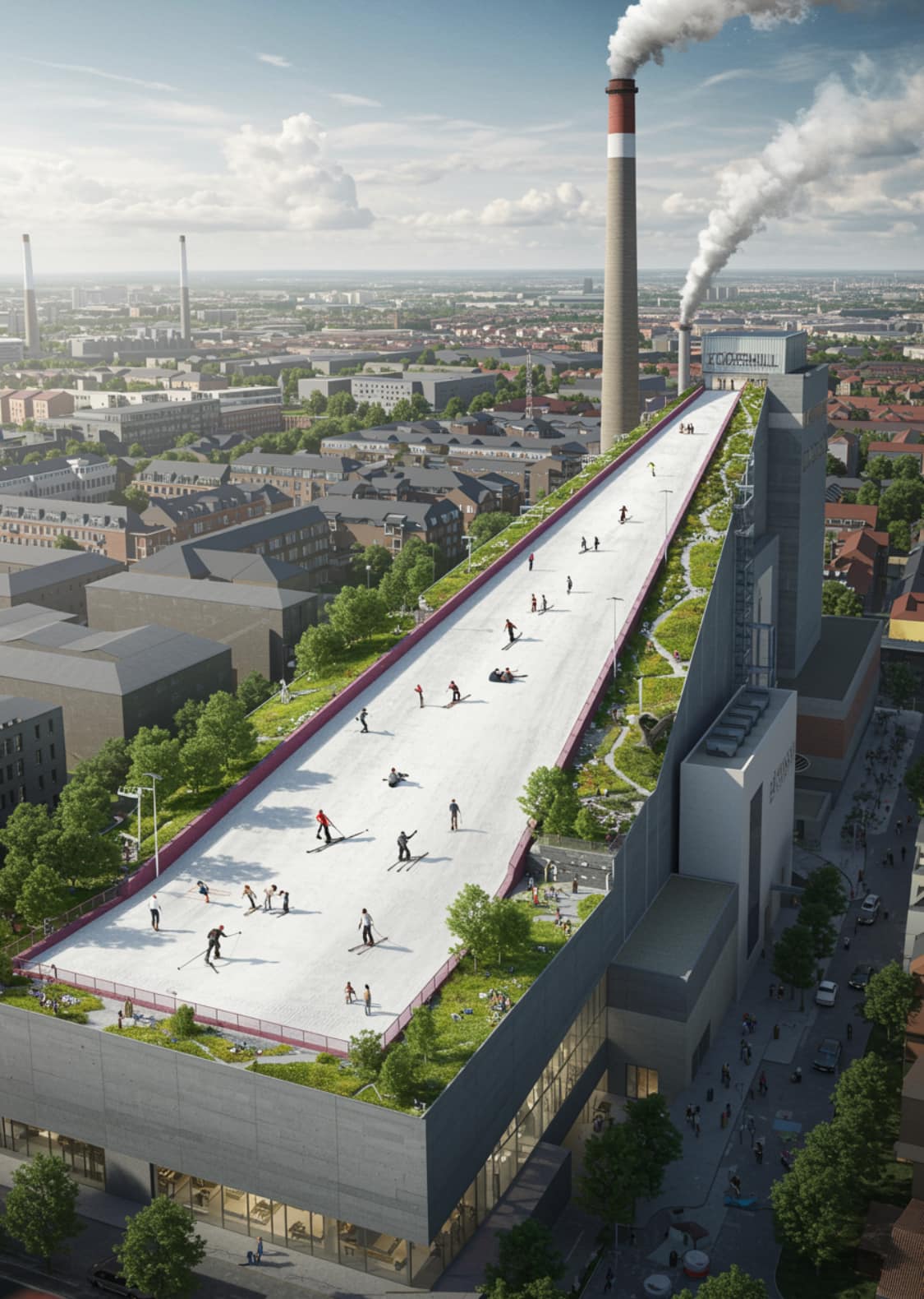 În Copenhaga, Danemarca, se află CopenHill, o centrală inovatoare care transformă anual 400.000 de tone de deșeuri în energie verde. Aceasta produce electricitate pentru aproximativ 30.000 de gospodării și încălzire pentru alte 72.000 de locuințe, reducând în același timp dependența orașului de combustibili fosili.