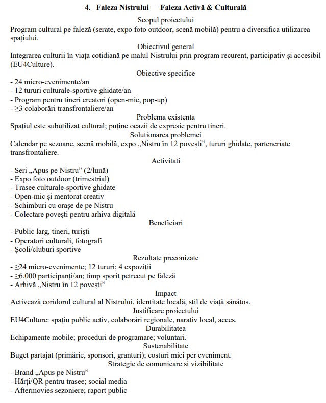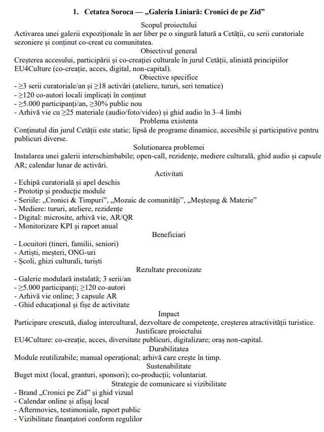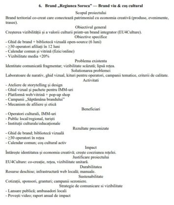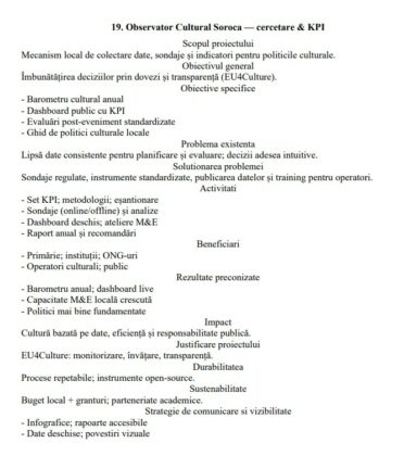 „Elaborarea și implementarea unei Strategii Culturale în Soroca înseamnă construirea unui viitor mai echilibrat și mai competitiv pentru oraș”, se menționează în document. Pe scurt, e un plan care vrea să dea culturii locul pe care îl merită: în centrul vieții orașului.