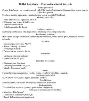 Soroca are deja un patrimoniu impresionant: Cetatea medievală, Muzeul „Nicolae Bulat”, Lumânarea Recunoștinței, satul pietrarilor din Cosăuți, dar și comunități vii de artiști, romi, profesori și tineri creativi. Strategia își propune să le conecteze între ele, într-un singur circuit cultural.
