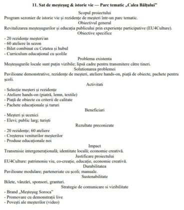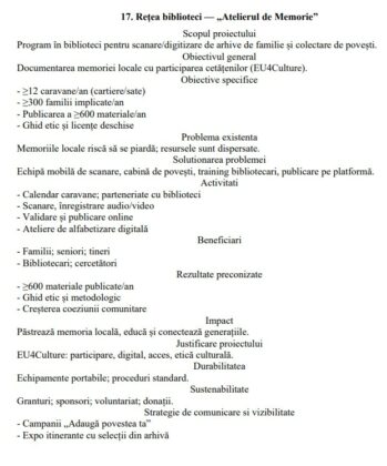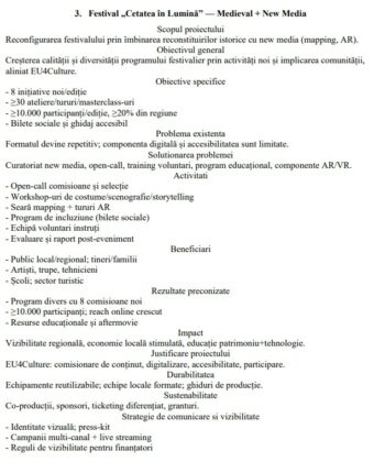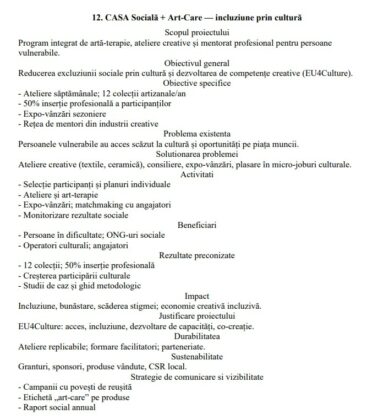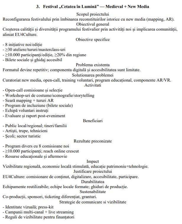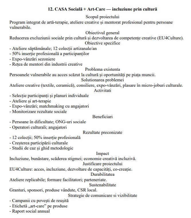 Oraș creativ și inovativ – sprijin pentru industriile creative, meșteșugari, tineri artiști și antreprenori culturali;
