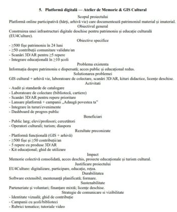 Documentul pornește de la o realitate simplă: în ultimii ani, activitatea culturală a orașului a fost susținută mai mult prin eforturi izolate – de muzee, școli, ONG-uri sau entuziaști locali – dar fără o viziune comună.