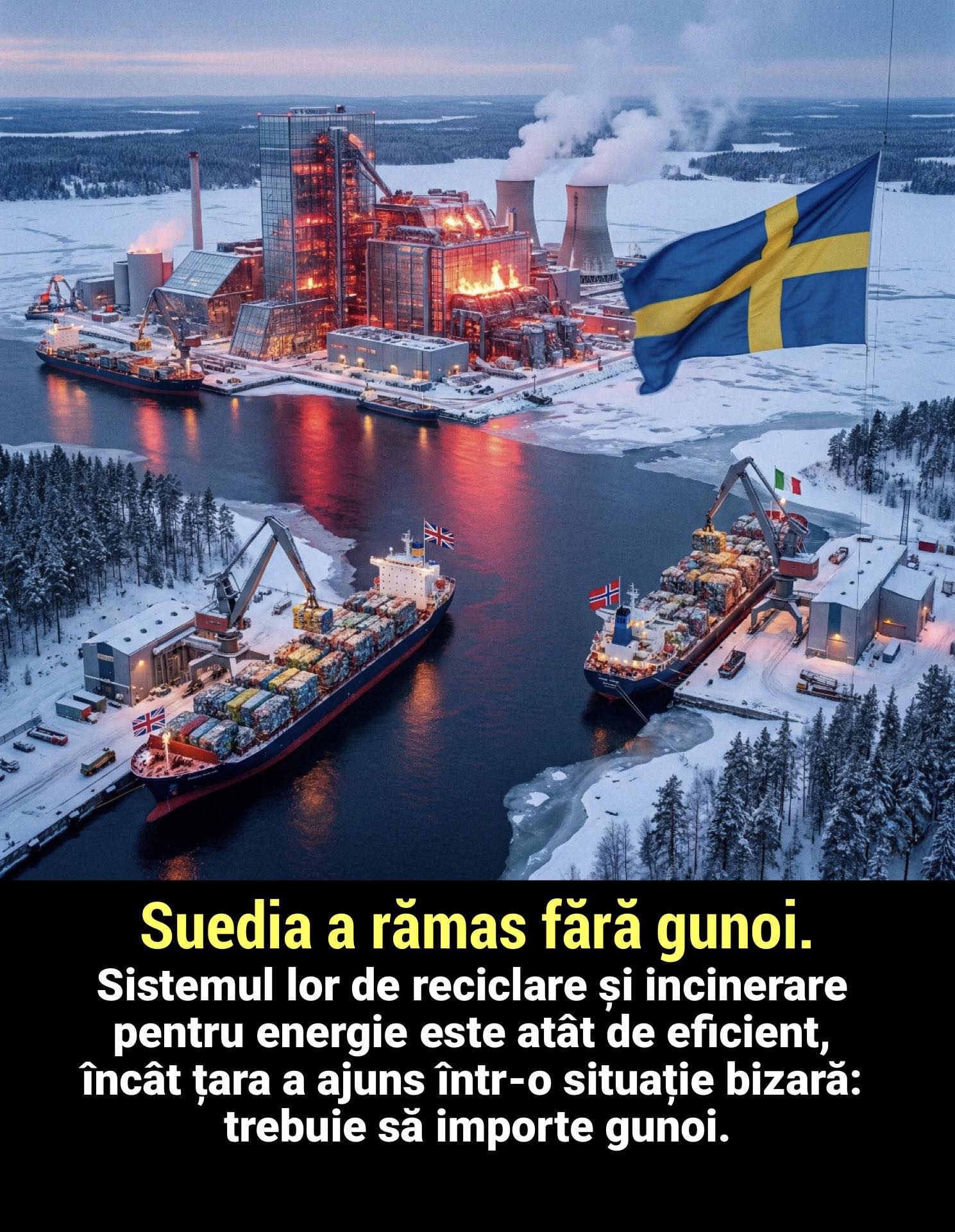 Suedia cumpără anual tone de deșeuri menajere din Marea Britanie, Norvegia și Italia pentru a-și alimenta centralele electrice care funcționează pe bază de incinerare. Pentru suedezi, gunoiul altora este o resursă prețioasă de combustibil, demonstrând că noțiunea de „deșeu” este doar o problemă de perspectivă și tehnologie.