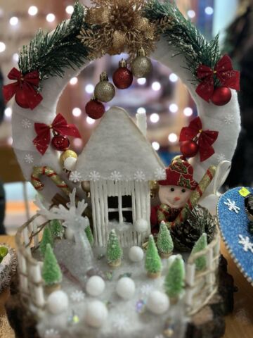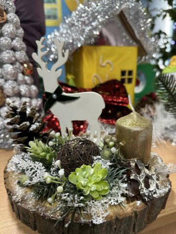 Holul liceului a devenit un spațiu de poveste, de la coronițe festive și ornamente strălucitoare până la figurine și felicitări lucrate cu migală, fiecare obiect expus a fost realizat cu inspirație și atenție la detalii. Elevii s-au întrecut în a realiza compoziții care mai de care mai originale, fiecare creație purtând amprenta talentului și imaginației lor.