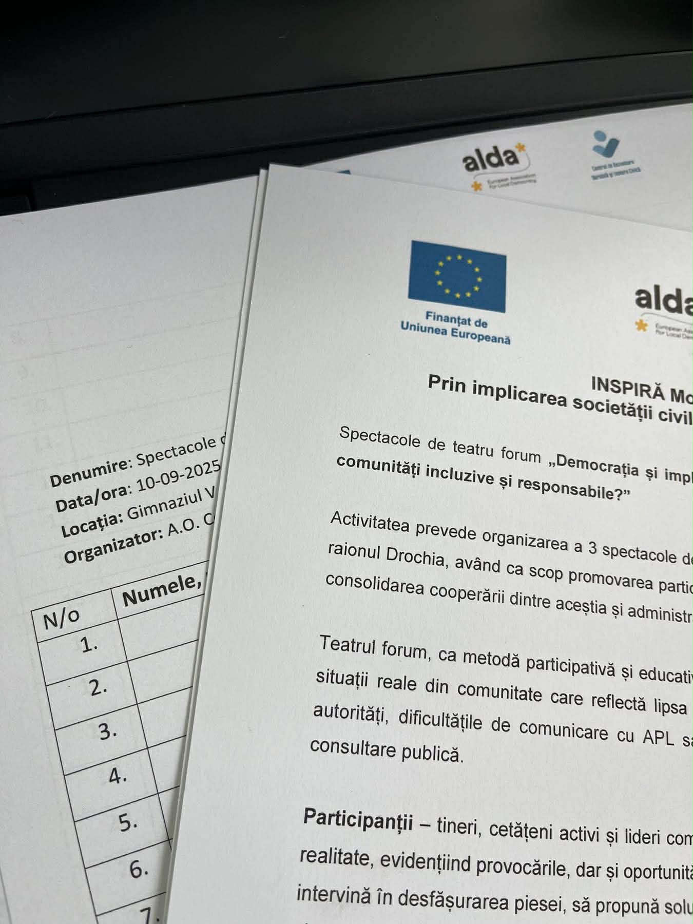 Activitățile sunt realizate cu suportul financiar al Uniunii Europene în cadrul proiectului INSPIRĂ Moldova. Conținutul acestora reprezintă responsabilitatea exclusivă a proiectului „CIVIC.ON – Activăm Spiritul Civic”, implementat de A.O. Centrul de Dezvoltare Durabilă și Inovare Civică, și nu reflectă neapărat poziția Uniunii Europene. ⸻ #InspiraMoldova #InspiredMoldova #ÎmpreunăMaiPuternici #FinantatDeUE #FundedByEU #StrongerTogether