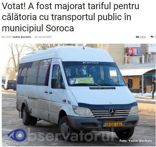 Locul 7: Poimâine ar putea să fie majorat tariful la transportul public din municipiul Soroca , cu 1021 vizualizări.