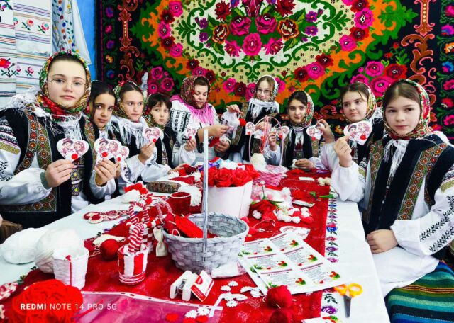 La mesele acoperite cu țesături tradiționale, copii, tineri și adulți au lucrat împreună, trei generații unite de aceeași dorință: păstrarea și transmiterea obiceiurilor moștenite. Sub îndrumarea doamnei Tentiu Mariana, participanții au descoperit legenda mărțișorului și simbolistica firelor alb și roșu — puritate și viață, lumină și iubire.