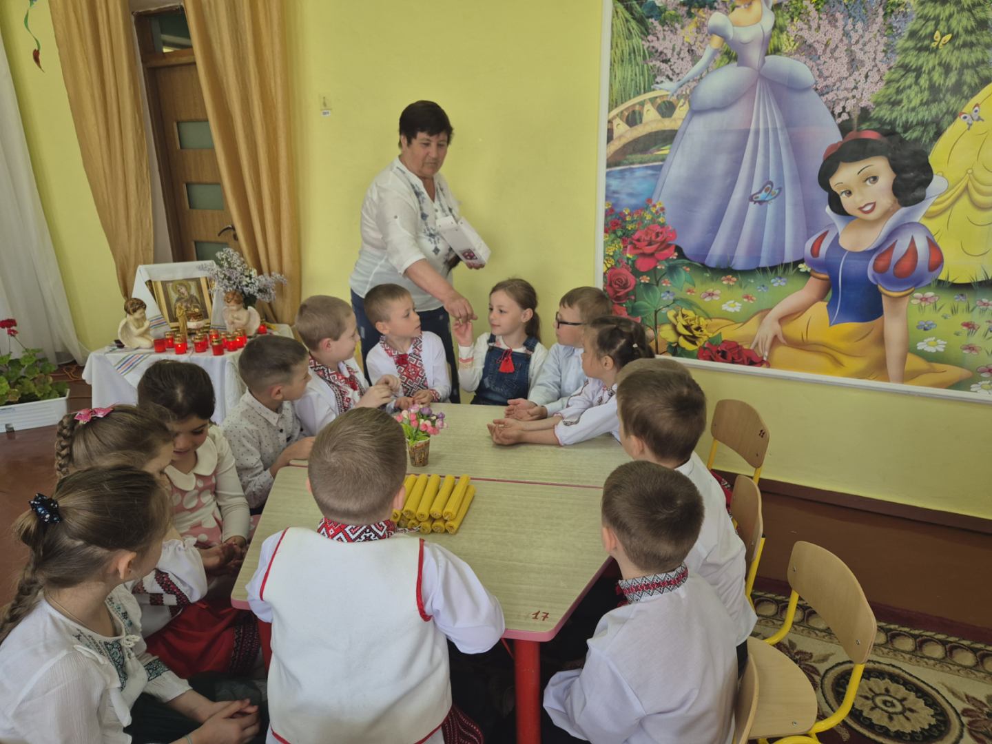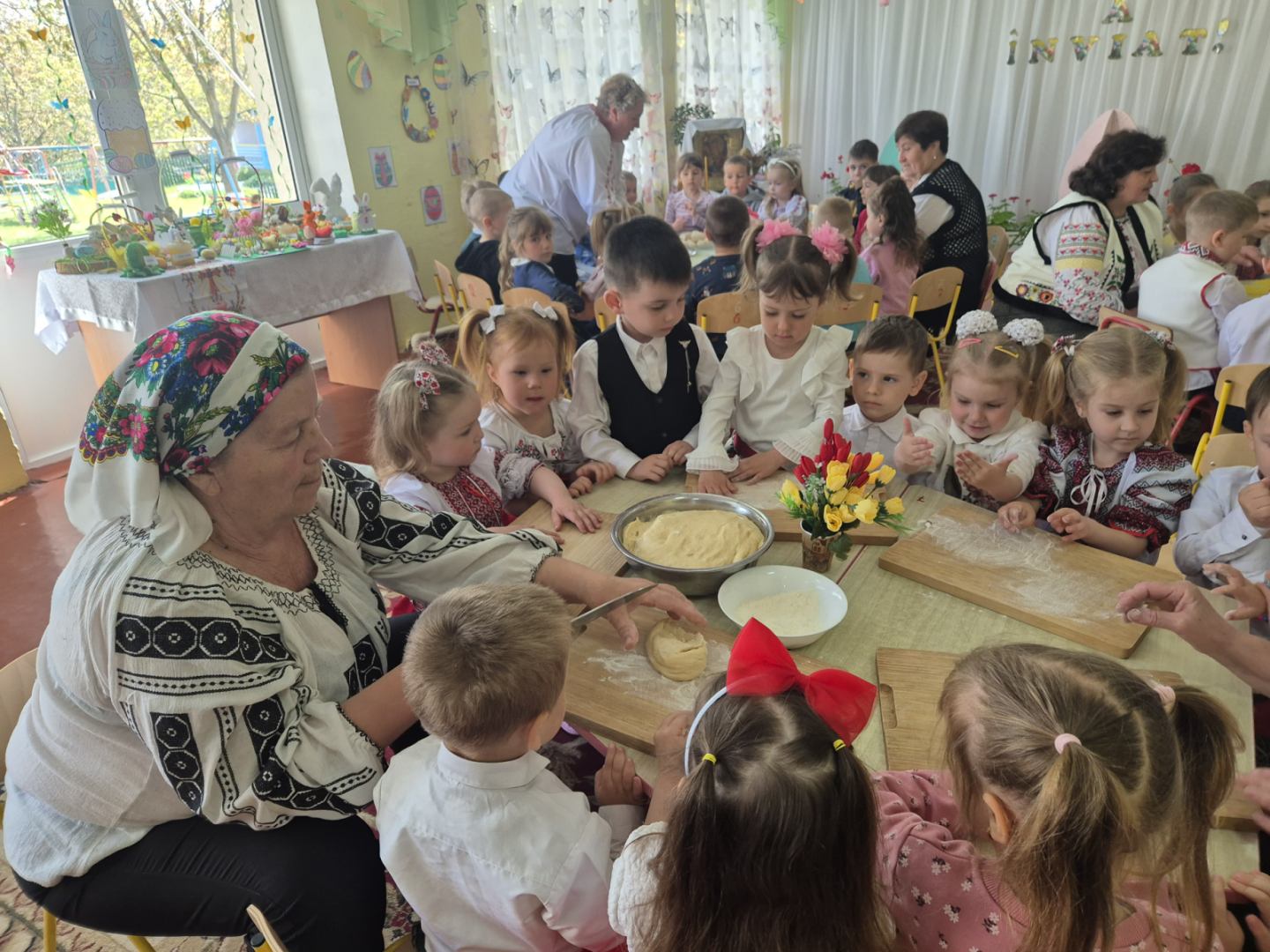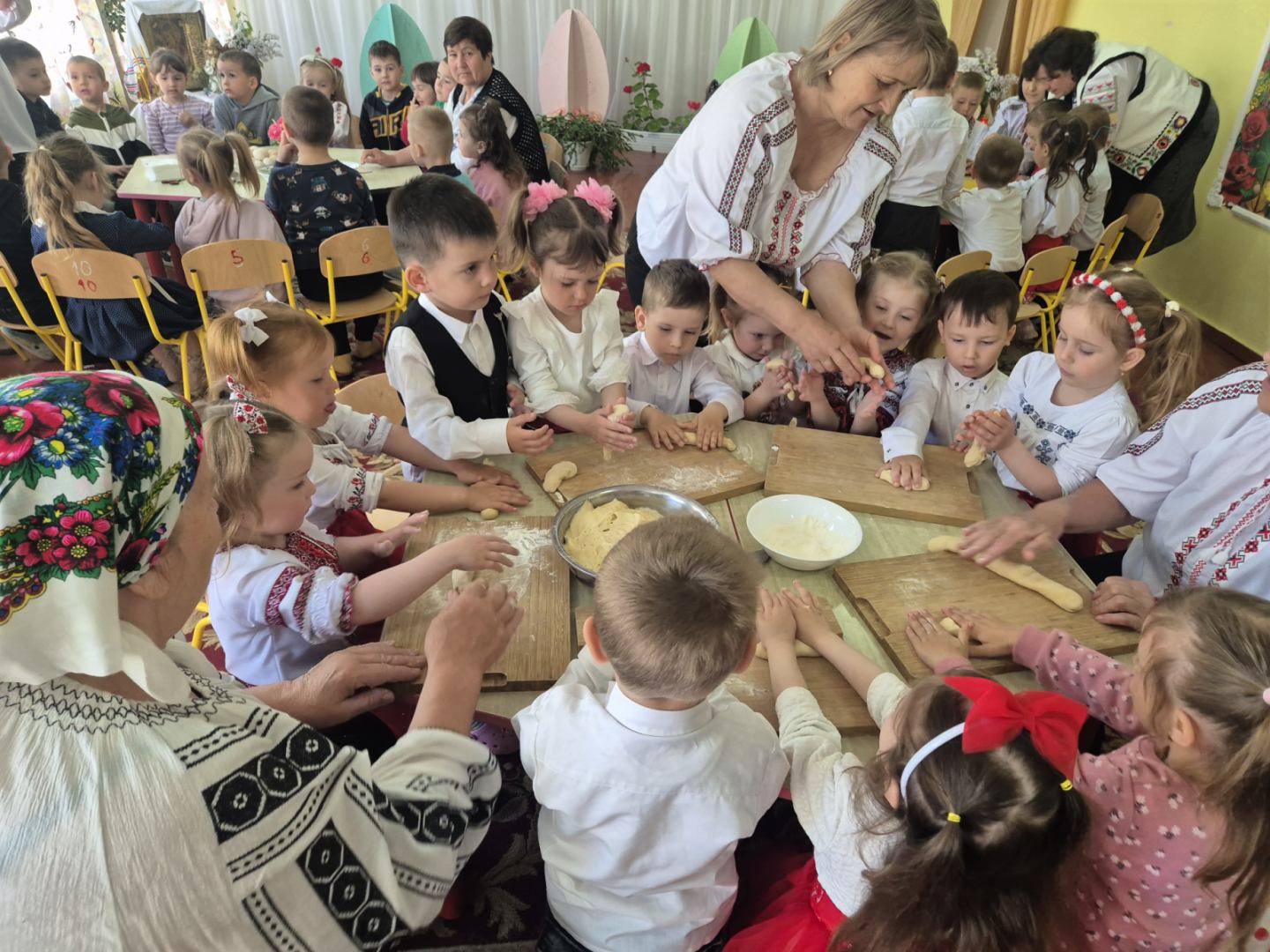 „Noi am desfășurat o activitate de suflet, în cadrul proiectului educațional „Bunicii – florile copilăriei mele”. Sărbătorile Pascale sunt momente speciale, încărcate de semnificație spirituală, dar și de tradiții care aduc împreună generații diferite. Activitățile realizate astăzi în cadrul celor trei ateliere împreună cu bunicii nu sunt doar prilej de bucurie și apropiere, ci și o punte de legătură între trecut și prezent, între obiceiuri străvechi și curiozitatea celor mici. Bunicii joacă un rol esențial în transmiterea valorilor și tradițiilor, de aceea ne-am propus să invităm foste educatoare care au activat în grădiniță pentru a petrece timp cu copiii, acest fapt fiind nu doar un gest de recunoștință, ci și o oportunitate valoroasă pentru toți cei implicați. Prin participarea la activități precum încondeierea ouălor, coacerea hulubașilor, înfrumusețarea lumânărilor, copiii învață răbdarea, învață să respecte vârsta și experiența, iar bunicuțele se simt din nou parte activă dintr-o comunitate vie și iubitoare.