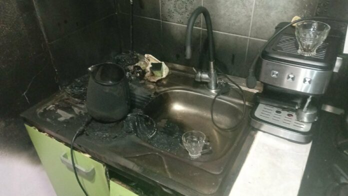 Potrivit informațiilor, focul a fost cauzat de o defecțiune tehnică a unui ceainic electric, achiziționat recent. Aparatul electrocasnic a luat foc, iar flăcările s-au extins rapid la câteva prosoape aflate în apropiere.